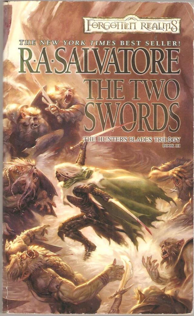 In The Two Swords, Obould's horde has pressed the Companions to the very gates of Mithral Hall, where Bruenor and his clan launch a desperate, last-ditch effort to push the orcs back. A desperate rescue attempt succeeds, with Drizzt and Innovindil rescuing the latter's pegasus, which Obould had captured and chained as a trophy, and Drizzt is unexpectedly reunited with the Companions that he long thought dead. The only major plot line to be tied up in this novel is the question of what Drizzt will do about his relationship with Catti-brie. Other than that, The Two Swords resolves a few minor plot threads. Drizzt and the surface elf Innovindil bring their quest for the captured pegasus to a conclusion. A few more characters meet their demise in this novel.